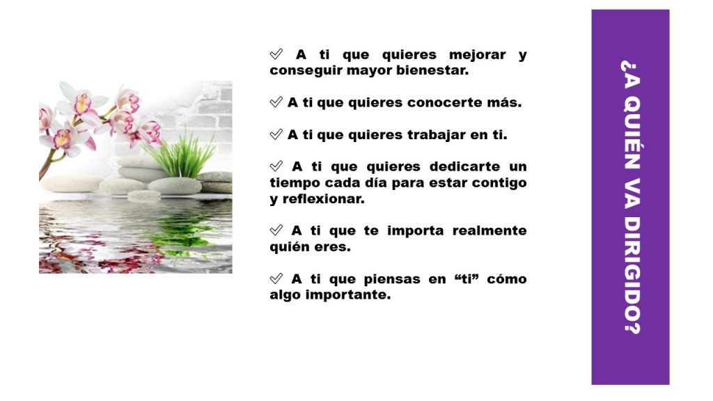 ✅ A ti que quieres dedicarte un tiempo cada día para estar contigo y reflexionar.